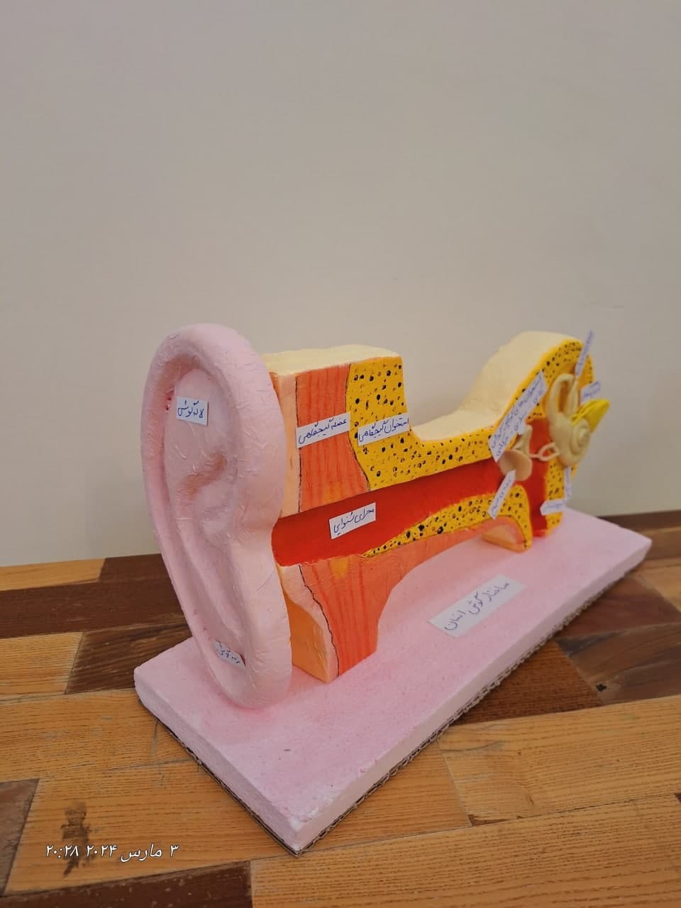 این ماکت با طراحی دقیق و برجسته، اجزای مختلف گوش انسان را بهصورت سهبعدی و ملموس نمایش میدهد و به درک بهتر عملکرد این اندام حسی مهم کمک میکند.