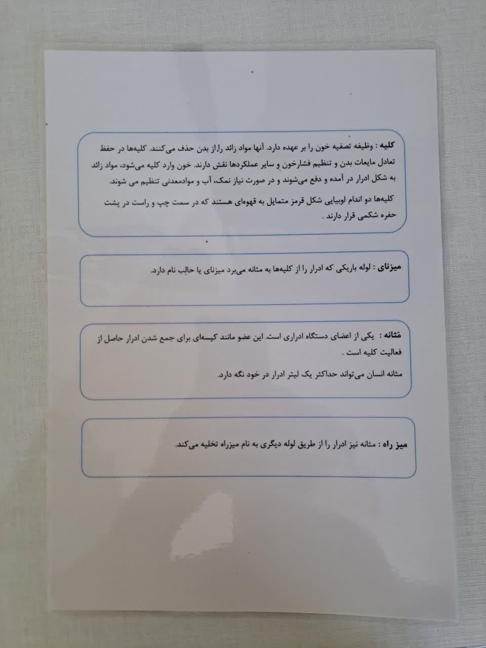 این مجموعه برگه‌های آموزشی با سایز A4 و جنس مقوای لمینیت‌شده، سیستم‌های مهم بدن مانند گوارشی، ادراری، تنفسی و گردش خون را به‌صورت دقیق و آموزشی نمایش می‌دهد.